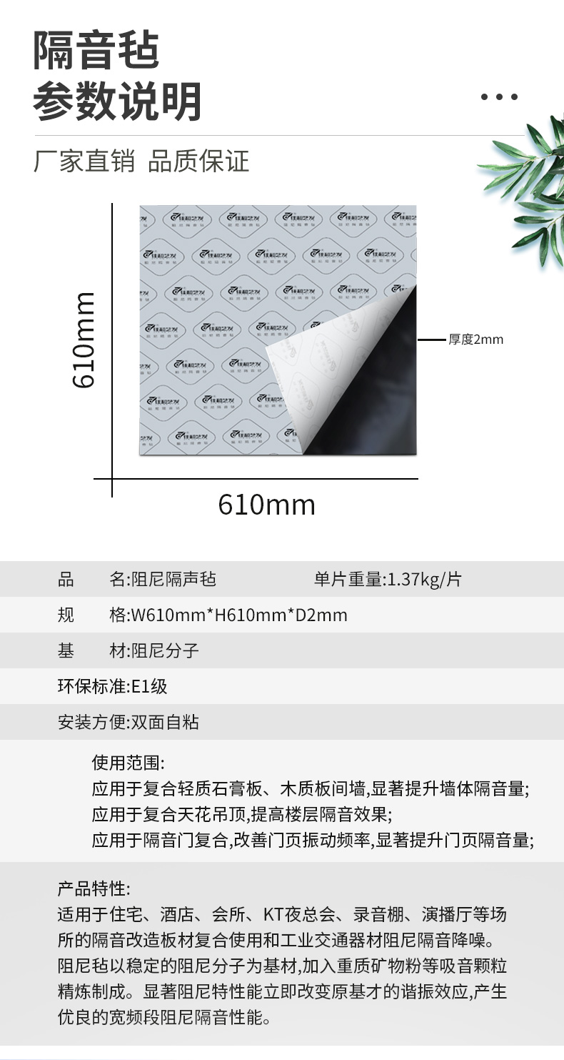 應用于隔音門復合,改善門頁振動頻率,顯著提升門頁隔音量